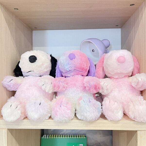スヌーピーがかわいいマーブルカラーになりました♪存在感いっぱいのぬいぐるみはインテリアにもオススメです!