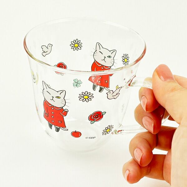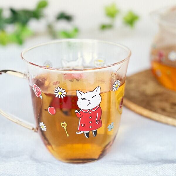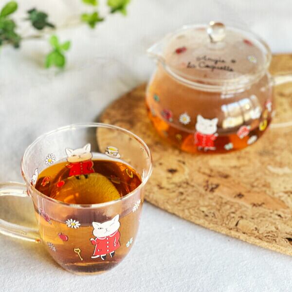 丸みを帯びた形がかわいい耐熱ガラスマグが登場です。ウインクしているアンシ?ーがキュート!耐熱なのでティーカップとしてもおすすめです。ちょうど良いサイズ感で勉強や仕事のお供にも。きれいな発色の秘密は国内での焼き付け。ガラスにもこだわった、透明度の高い耐熱マグカップです。 紅茶が大好きなアンジーと一緒にゆっくりティータイムをしませんか。同柄デザインのティーポットもお揃いでどうぞ!
