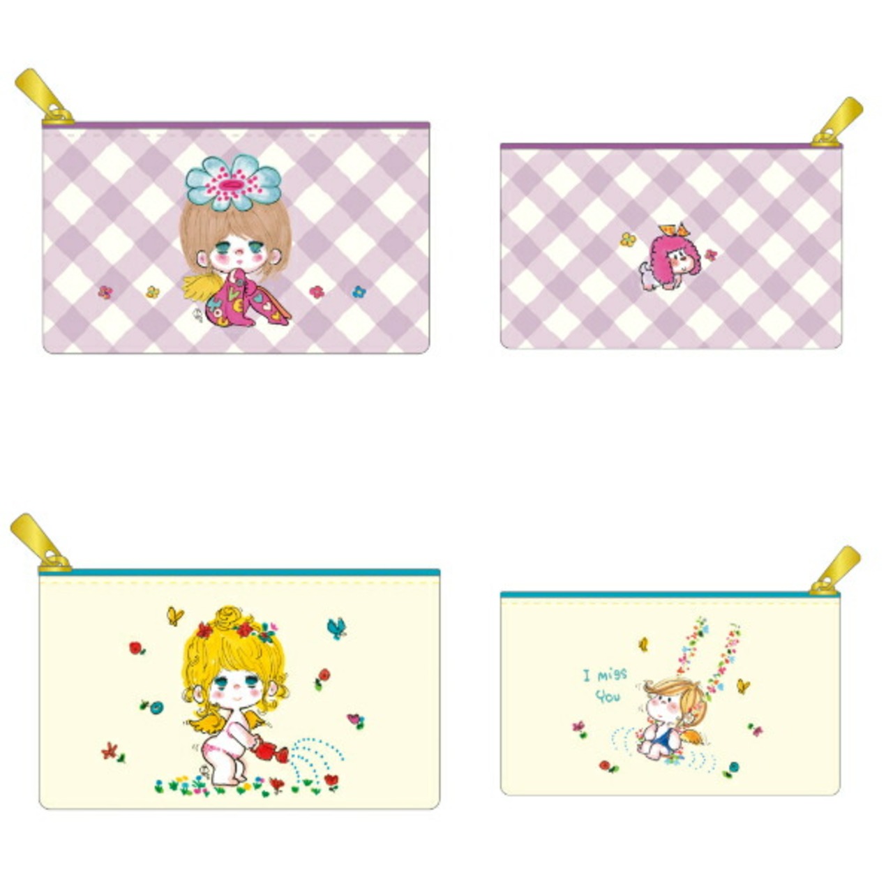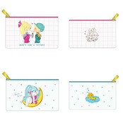 小物を入れるのに便利なミニサイズのフラットポーチです。全10種類の中からランダムアソートによりいずれか1種類が入ってます。(セット販売ではありません。)表も裏も水森亜土の世界観が表現された可愛いデザインのポーチです♪