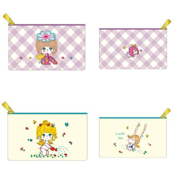 水森亜土 トレーディングフラットミニポーチ 【全10種類のうちランダムで1点】