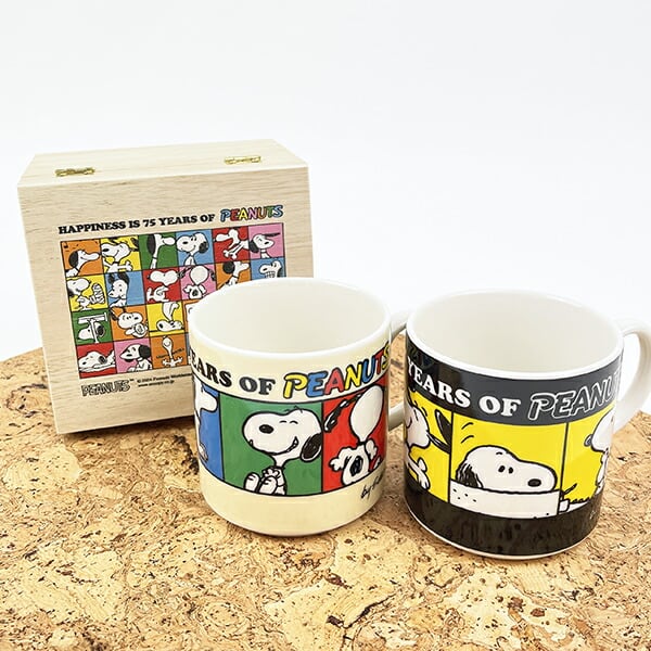 スヌーピー PEANUTS 75th 木箱入マグ (ブラック) キッチン SNOOPY