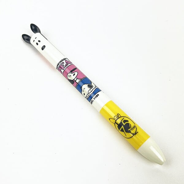 75周年を記念した耳ノックボールペンです。スヌーピーの耳を押すと芯が出るボールペン♪スラスラ書きやすく、インクは赤と黒なので日常使いで大活躍◎【ボール径】0.7mm