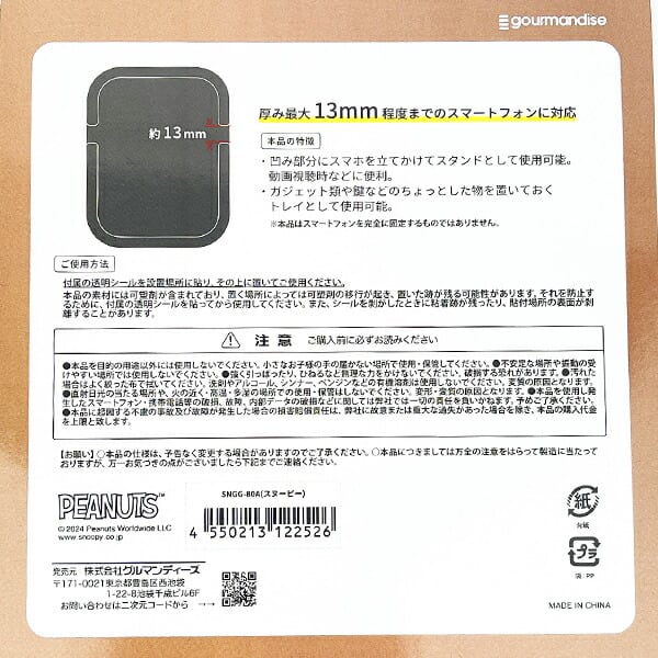 スヌーピーのスマートフォンスタンドトレイです。スマホを立てかけてスタンドにしたり、ちょっとした小物を置いておくトレイにもなっちゃう2WAY仕様♪厚み最大13mm程度までのスマートフォンに対応。動画を見る時などに便利です☆可愛いデザインなのでそのままお部屋に置いておくだけで可愛い〜♪