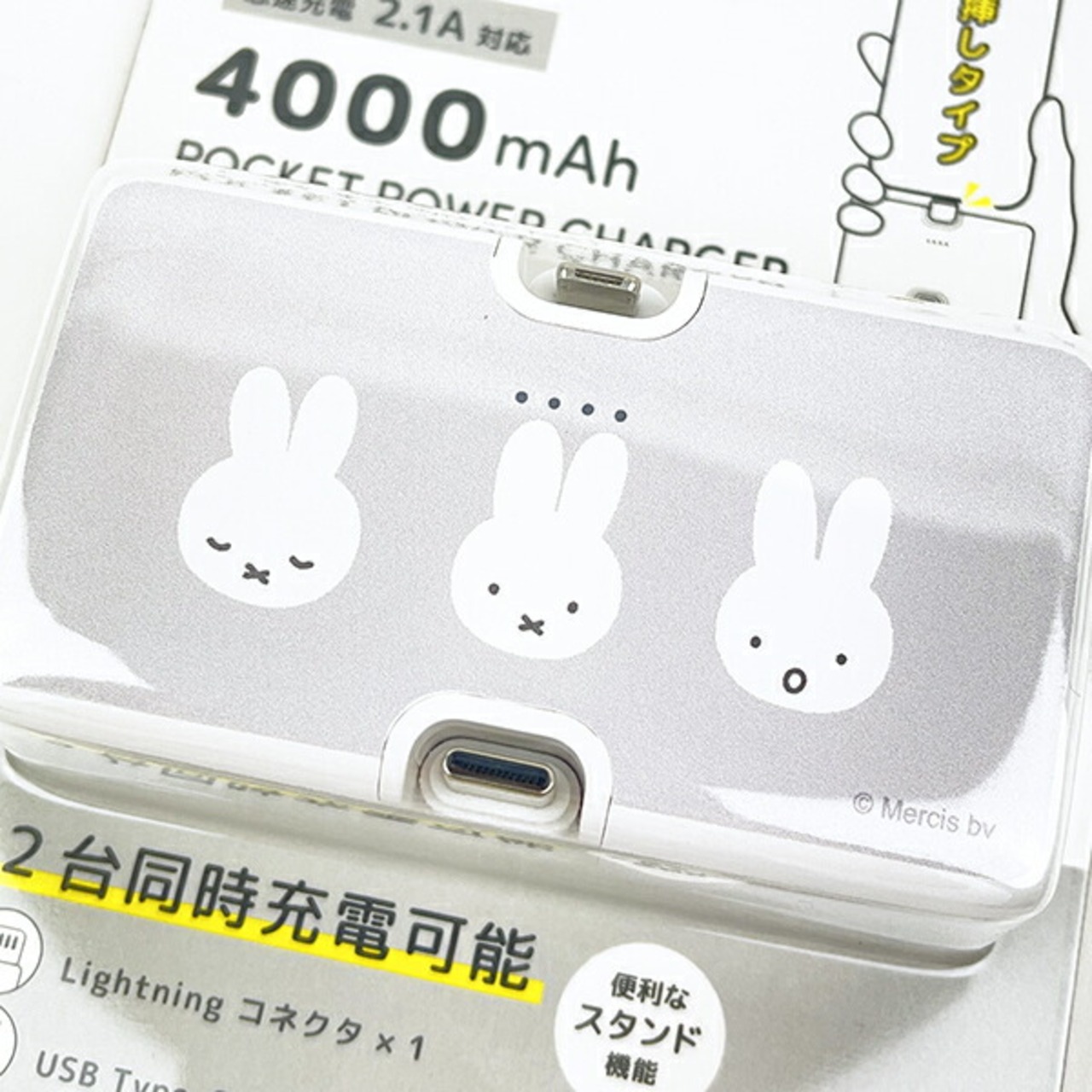 ミッフィー miffy Type-Cコネクト付きリチウムイオン充電器 スマホ用品 モバイルバッテリー