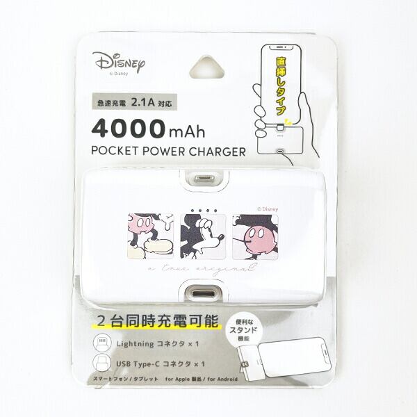 ディズニー ミッキーマウス Type-Cコネクト付きリチウムイオン充電器 スマホ用品 モバイルバッテリー Disney