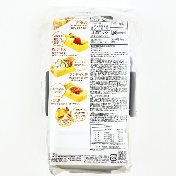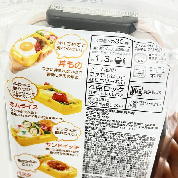 ドーム型のフタでふわっと盛って美味しさUP!4個所ロックでき汁モレしにくいフタで高い仕切りでおかずが偏りにくく片手で持てるスリムタイプです♪丼物やオムライス、サンドイッチ、パスタなど色んなものをお入れできますよ♪フタを外して電子レンジOK◎【容量:530ml】
