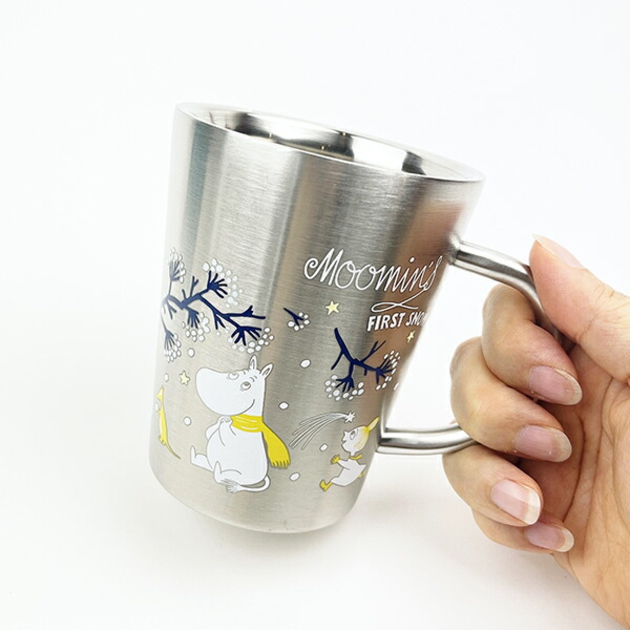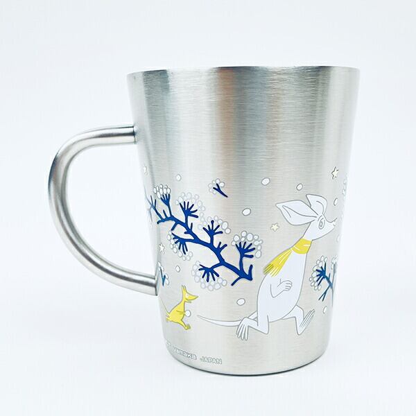 ムーミン達が冬のパーティーを庭で楽しんでいる様子を描いた、特別なアート♪飲み物の温度を長時間キープするステンレスマグカップです◎ホットにもコールドにも対応可能で、オールシーズン活躍します。大きな取っ手が持ちやすく、デスクワークのお供にもぴったり☆彡【容量:約360ml】