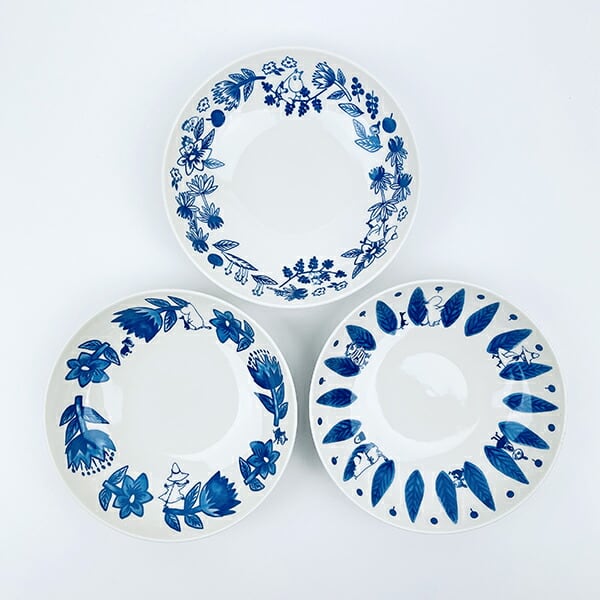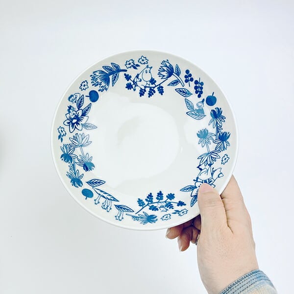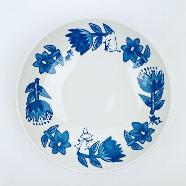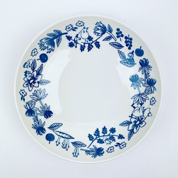 ムーミン谷の植物を美しい北欧ブルーで描いた器です♪植物柄の中にはムーミンやたくさんの仲間たちが描かれており、お皿の表面だけではなく、裏面にも生き物とリースのような絵柄◎どんな料理でも合わせやすいデザインです♪食洗機・電子レンジ使用可◎【箱サイズ:180×190×75?】