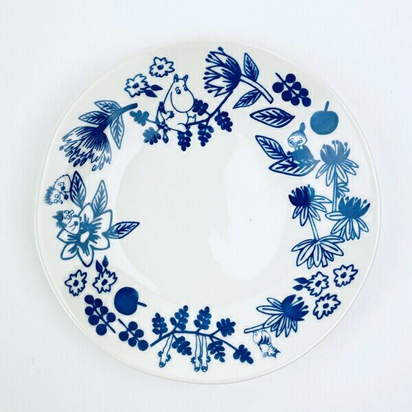 ムーミン谷の植物を美しい北欧ブルーで描いた器です♪植物柄の中にはムーミンやたくさんの仲間たちが描かれており、お皿の表面だけではなく、裏面にも生き物とリースのような絵柄◎どんな料理でも合わせやすいデザインです♪食洗機・電子レンジ使用可◎【箱サイズ140×150×40?】