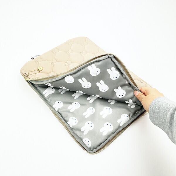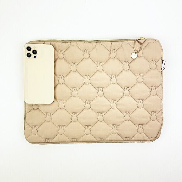 ミッフィー miffy キルティング フラットポーチ グレージュ PCケース タブレットケース
