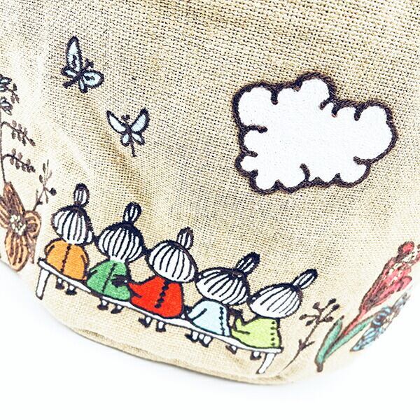 ムーミンのマルチボックスです。ジュート素材に色鮮やかな刺繍が映えてとってもかわいい♪大容量なのでリビングや子ども部屋でのお片付けに大活躍◎