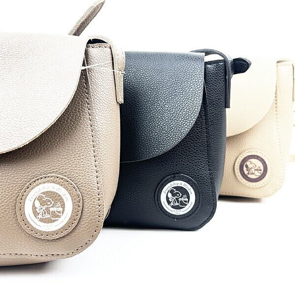 スヌーピー×レザー調の上品でおしゃれな雰囲気に加え、前面の落ち着いたワンポイント、チャームにスヌーピーのデザイン施されていて嬉しい♪容量は1Lでコンパクトなサイズなのでちょっとしたお出かけのお供に最適です!!まさにオシャレさと使いやすさを兼ね備えたフラップショルダーバッグです☆オシャレのワンポイントにもおススメです♪幅広いシーンで活躍間違いなしです!!