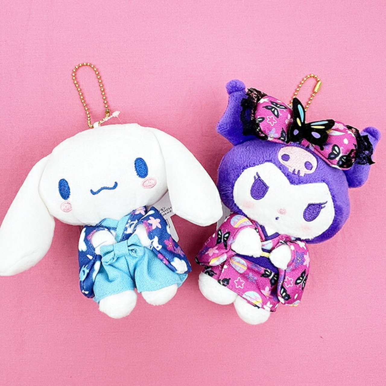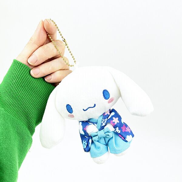 サンリオ シナモロール 千鳥着物 マスコット ぬいぐるみ ボールチェーン ブルー