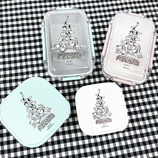 スヌーピーのランチボックスです。スヌーピーの歴史が詰まった75thデザインがキュート♪4点ロックで汁もれしにくいのが◎背の高い仕切り付きが嬉しいポイント☆食洗機・電子レンジ(フタをはずして)使用可◎スヌーピー好きの方はぜひ周年のお祝いにいかがですか♪【容量:500ml】