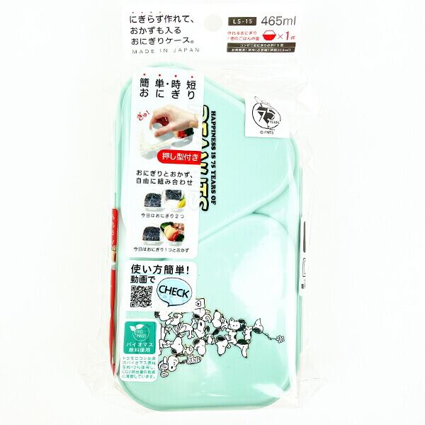 スヌーピーのおにぎりランチケースです。スヌーピーの歴史が詰まった75thデザインがキュート♪押し型付きで簡単におにぎりが作れちゃいます☆にぎらず作れるので時短に!!忙しいママにおすすめのアイテムです☆おにぎり2個やおにぎり1個×おかずの組み合わせもOK!電子レンジ(フタをはずして)使用可◎スヌーピー好きの方はぜひ周年のお祝いにいかがですか♪【容量:465ml(215ml+250ml)】