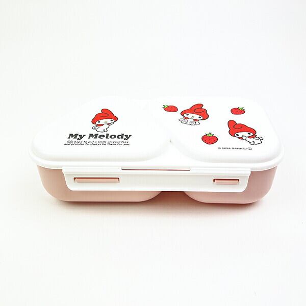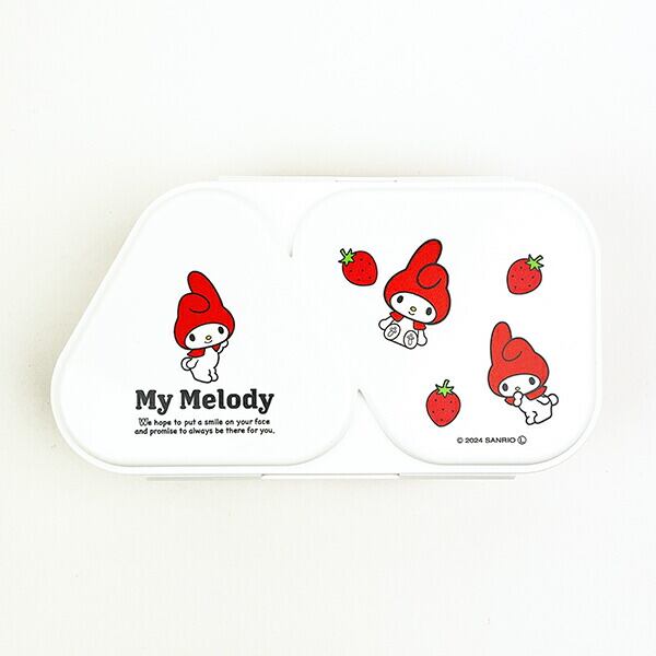 マイメロディのおにぎりランチケースです。押し型付きで簡単におにぎりが作れちゃいます☆にぎらず作れるので時短に!!忙しいママにおすすめのアイテムです☆おにぎり2個やおにぎり1個×おかずの組み合わせもOK!マイメロちゃんといちごデザインがとてもキュートです♪電子レンジ(フタをはずして)使用可◎【容量:465ml(215ml+250ml)】