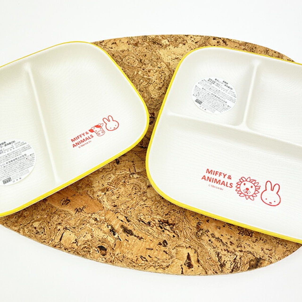 ミッフィー&アニマルズのスクエアランチプレートです。仕切りが付いていて使いやすい!ミッフィー&アニマルズたちのデザインもかわいいです☆食洗機・電子レンジ使用可◎