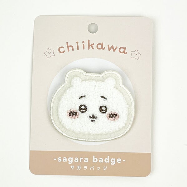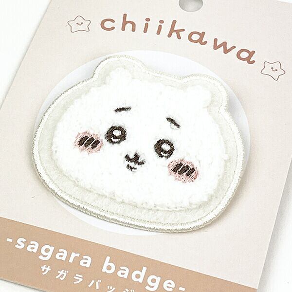 ちいかわのサガラバッジです。ふわふわ、もこもこのフェイスデザインで可愛い〜♪バッグやポーチのワンポイントになっちゃいます☆ぜひ推しキャラと一緒にお出かけしてみてください!