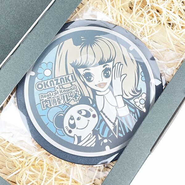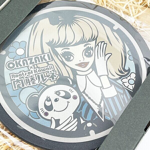 独特な感性と多彩な才能で今や世界中に広がる日本独自の「Kawaii」文化の原型を作ったアーティスト内藤ルネ。ルネガールと日本初のパンダキャラクターのルネパンダ、背景にはサンフラワーがデザインされています。ヤスオカのレーザー技術を使い着色ではない発色によって愛知県岡崎市で見ることのできるカラフルなマンホールをミニチュアマンホールで再現しました。ぜひ手にとってルネの「Kawaii」世界観をお楽しみください。7色展開の「みどり」です。