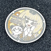 独特な感性と多彩な才能で今や世界中に広がる日本独自の「Kawaii」文化の原型を作ったアーティスト内藤ルネ。ルネガールと日本初のパンダキャラクターのルネパンダ、背景にはサンフラワーがデザインされています。ヤスオカのレーザー技術を使い着色ではない発色によって愛知県岡崎市で見ることのできるカラフルなマンホールをチタン製のミニメダルで再現しました。アクセサリーのパーツとしても使える可愛らしいデザインです。7色展開の「オレンジ」です。