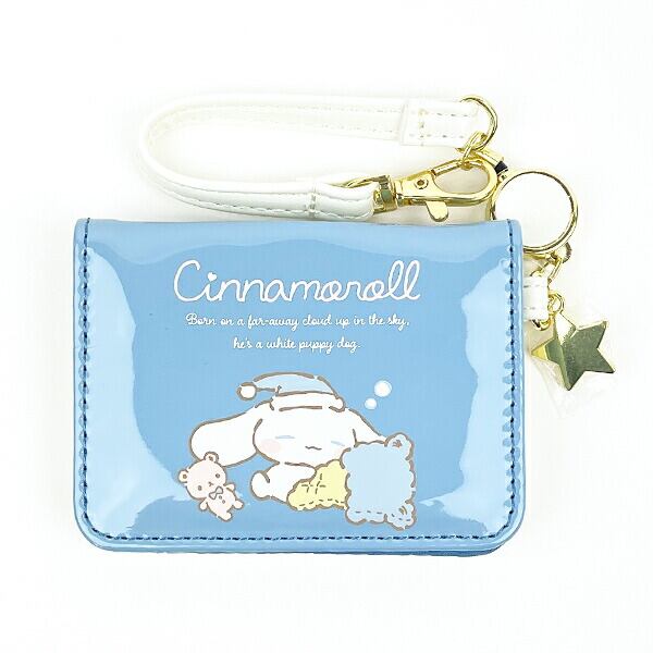シナモロールの可愛いアイテム◎リール付オープンパスケースです♪通勤通学に欠かせない!ホルダー部分がビョーンと伸びるので、カバンに付けたままで改札を通れちゃいます★2つ折りの見開きタイプで、ポケットが付いてとっても便利◎