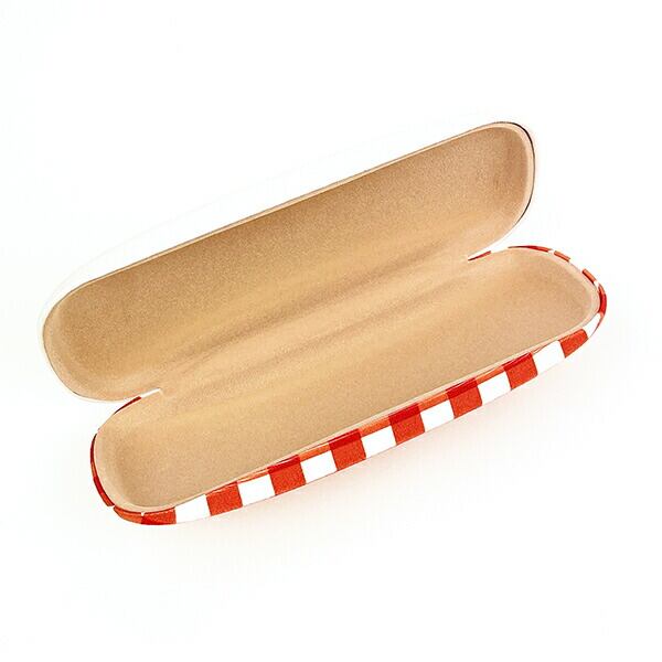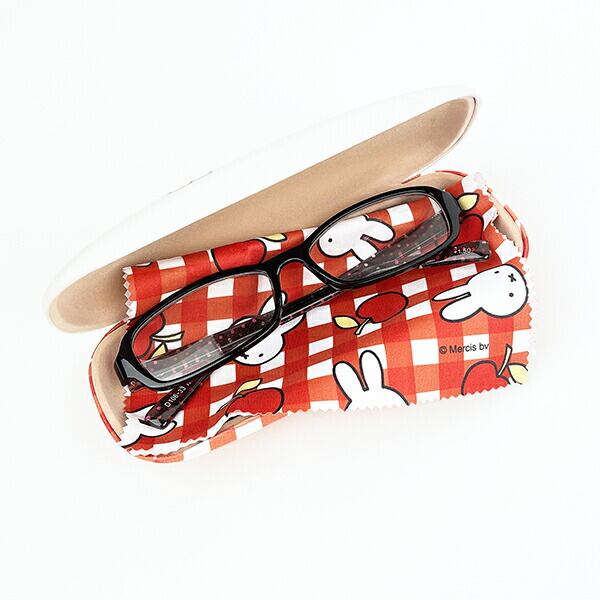 ミッフィーとりんごのチラシ柄×ギンガムチェックがポイントのシリーズです♪本体はしっかりとした作りで大切なメガネを守ってくれます。