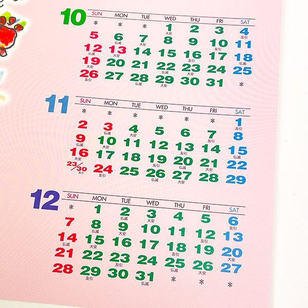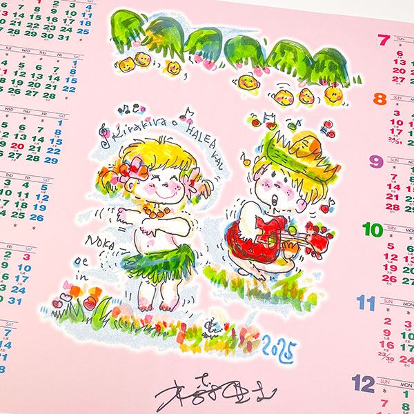 一枚のkレンダーです。亜土ちゃんのカワイイイラストがセンターにあり、ポスターのようにも飾れます♪