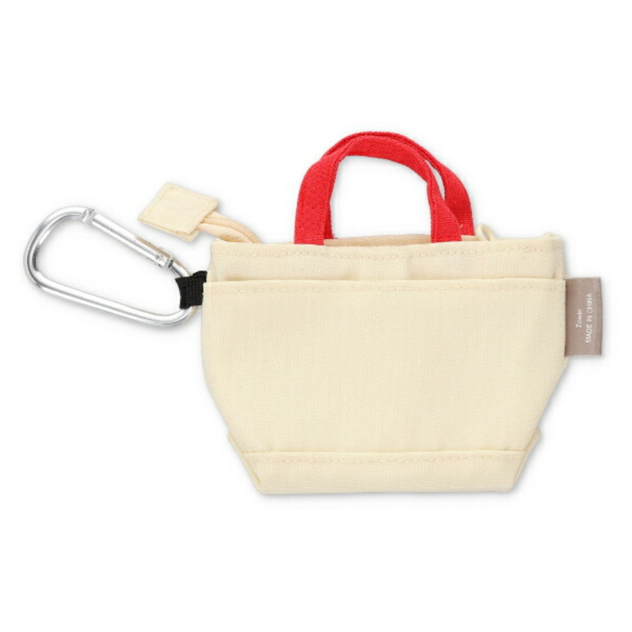 ミニサイズがかわいいトートバッグ型のキーケースです。内側にDカンが付いているので鍵を付けられます。前面に2ヶ所・背面に1か所ポケット付きでリップクリームやヘアピンなど小物を収納するのにぴったり。カラビナ付きでバッグにぶら下げたり、ぬいぐるみに持たせてもかわいいですよ♪