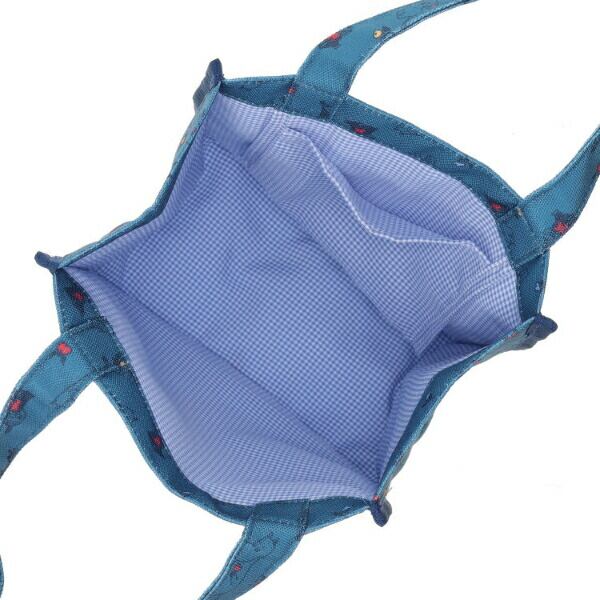 ギンガムチェックが可愛い、ランチタイムシリーズ。ムーミン、リトルミイ、ニョロニョロ、ソフスの総柄がかわいいランチトートバッグ。内生地のギンガムチェックがアクセントになっています。ポケットも付いているので、小物を分けて収納できます。