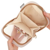 パステルカラーが可愛らしい♪ミルクカラーシリーズのポーチです。じゃばら仕様で取り出しやすく、コスメやヘアゴムに丁度いいサイズ感◎背面は半透明のPVC、前面はメッシュ素材で中身が見えて便利です。