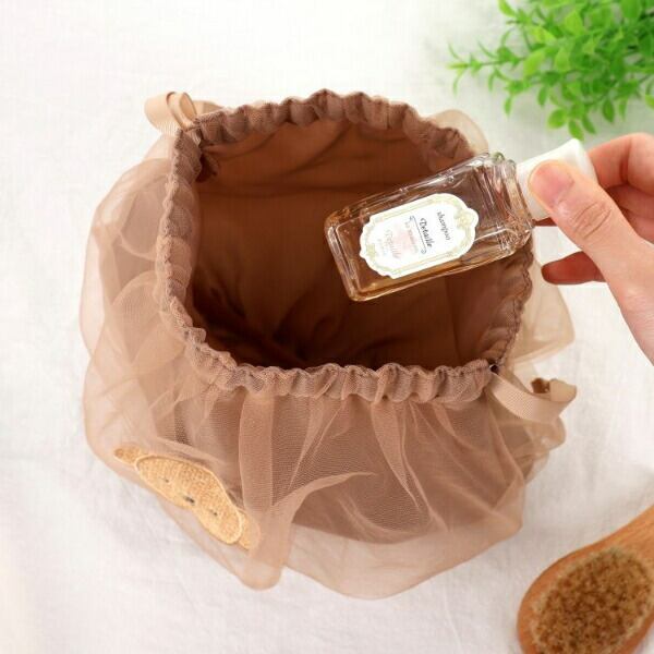 ふんわりチュールが大人可愛い巾着ポーチです。メイクツールや貴重品など、小物の収納にぴったり!お出かけや旅行の荷物の整理にも役立ちます◎
