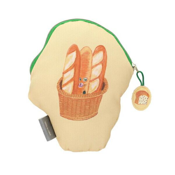 にせパンどろぼうのダイカット型ポーチです。コスメやステーショナリー、ちょっとした小物の収納に大活躍◎ふかふかとクッション性のある手触りと、引き手のパンモチーフに癒されます♪