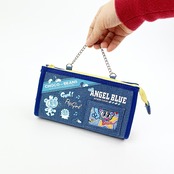 平成初期から2000年代を思い出させるデザインがかわいい!懐かしいデニム素材の大容量ポーチです♪底マチがあるのではさみなど大きめの文具や、厚みのあるコスメも収納可能◎チェーンがアクセントになって可愛い!小窓から覗くカラーイラストにも注目ですよ〜♪