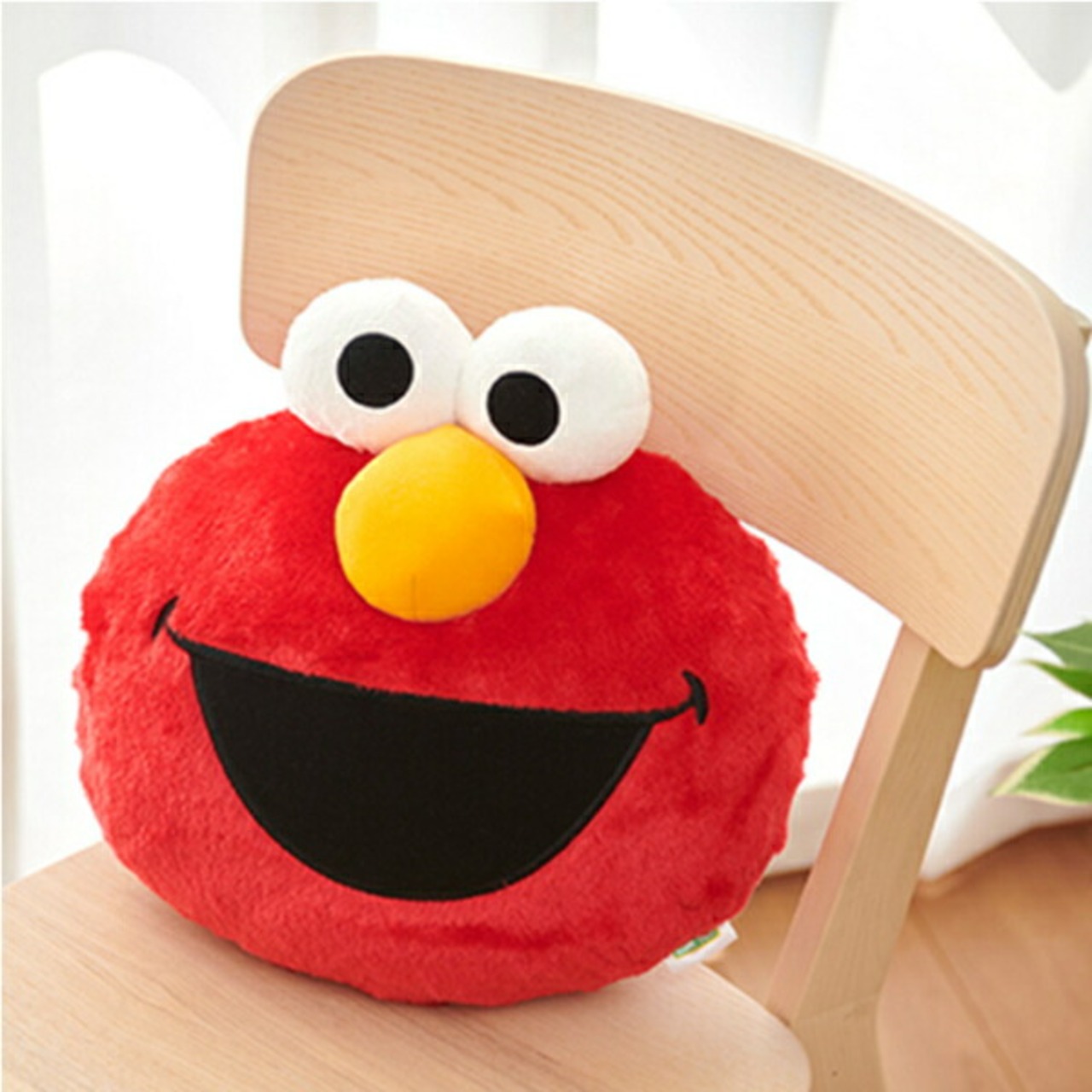 ふわふわな手触りに癒される、エルモのフェイスクッションです。ベッドやソファ、車の中など、色々な場所で活躍します◎存在感のあるサイズで、プレゼントにもおすすめです♪