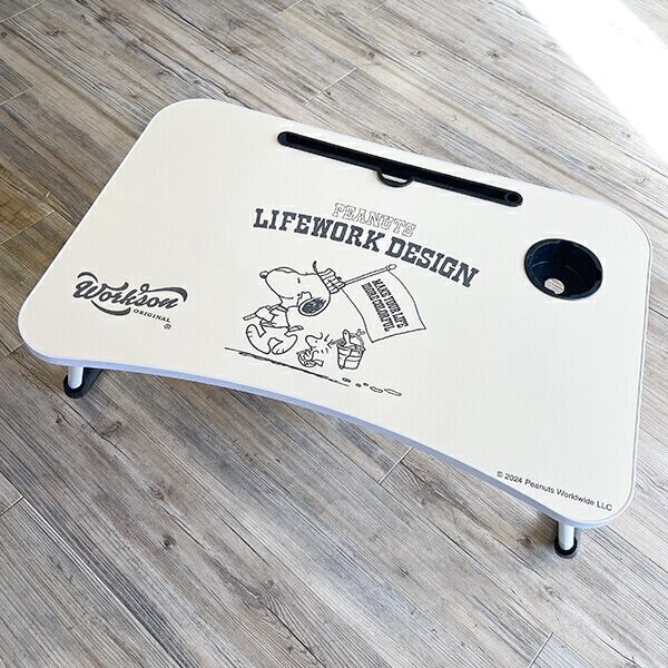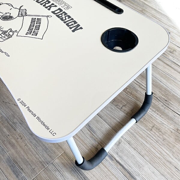 スヌーピーの折り畳みミニテーブルです。カップやペットボトルなどの飲み物を置けるホルダー付き☆アウトドアにはもちろんタブレットを立てかけられる溝がついているのでお勉強する時にも大活躍間違いなし!折り畳めるので収納もできちゃいます♪シンプルなデザインなのでどなたでも使いやすいミニテーブルです☆