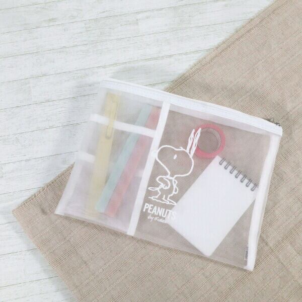 「白×透明」で表現されたデザインのステーショナリーケースです。半透明な白と透明素材を組み合わせることで浮かび上がる白いモチーフの儚げな雰囲気を楽しめるシリーズ☆メッシュ生地で中が確認しやすいので整理整頓に便利◎A5サイズのノートがぴったり入ります♪オフィスなどでも活躍すること間違いなし!同シリーズでそろえるのもおすすめです♪